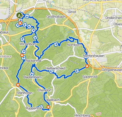 Die Runde startet im Raum Montabaur / Wirzenborn und führt zunächst in die bewaldeten Höhenzüge rund um Reckenthal und Heilberscheid. Der Streckenverlauf ist typisch für den südlichen Westerwald: lange, ruhige Waldpassagen wechseln sich mit offenen Abschnitten und kurzen Ortsdurchfahrten ab.